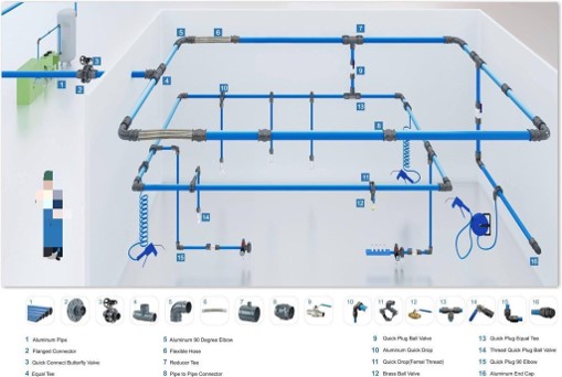 systems, Modular Piping system for all types of industrial piping and Reciprocating and Rotary screw